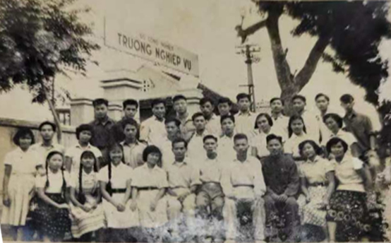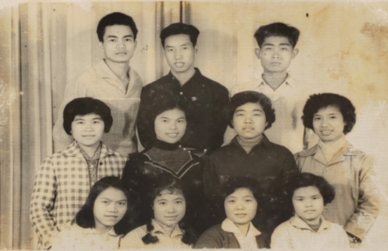 就讀于越南中華中學的龍校長(三排左2)和梁老師(二排右2)