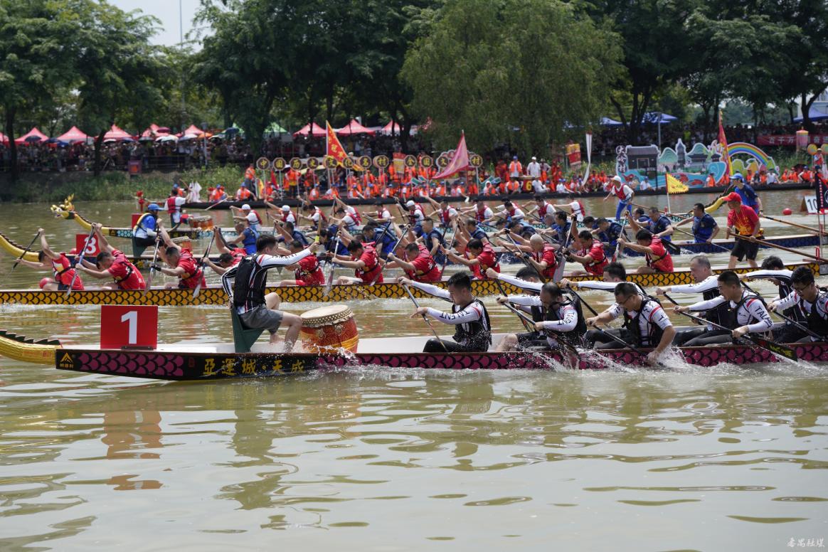 如果說趁景探親在于斗靚斗威,那么賽龍則是所有環(huán)節(jié)中最扣人心弦的一環(huán)。6月2日在石樓鎮(zhèn)礪江河舉辦的番禺區(qū)龍舟邀請(qǐng)賽上,來自香港、深圳、東莞、佛山等多支“過江龍”,與番禺本土龍舟隊(duì)伍,上演端午版的“速度與激情”,開展一場(chǎng)意志、毅力的角逐和團(tuán)結(jié)合力的大比拼。