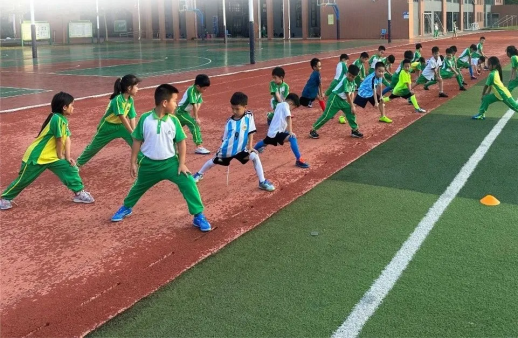 正在接受足球訓練的番禺區(qū)小學生