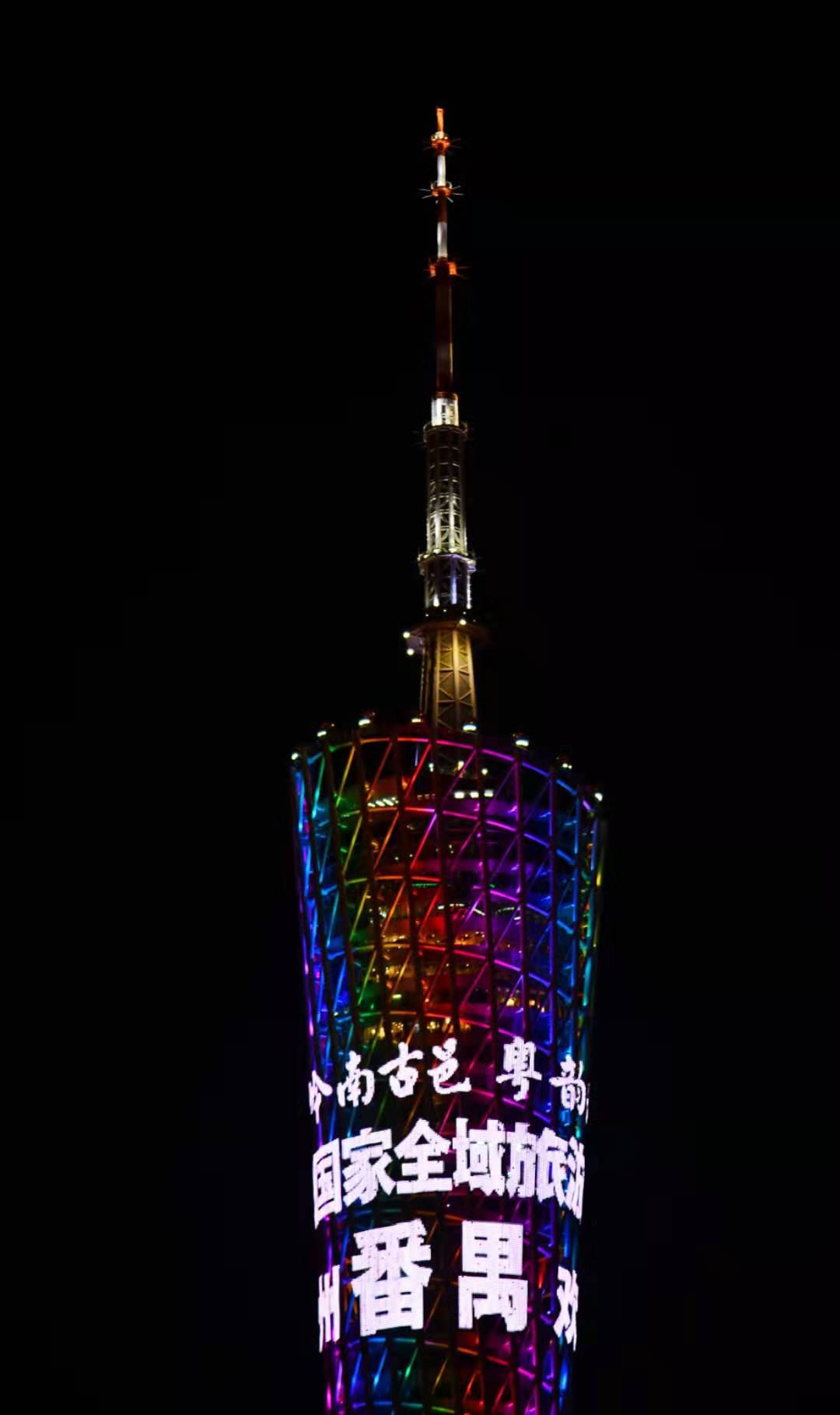 9月26日19:53時,廣州地標廣州塔塔身發布“嶺南古邑 粵韻番禺、首批國家全域旅游示范區、廣州番禺歡迎您”宣傳。震撼大氣的宣傳畫面,在珠江兩岸璀璨夜景燈光的襯托下,讓人更加感受到廣州番禺的獨特魅力。