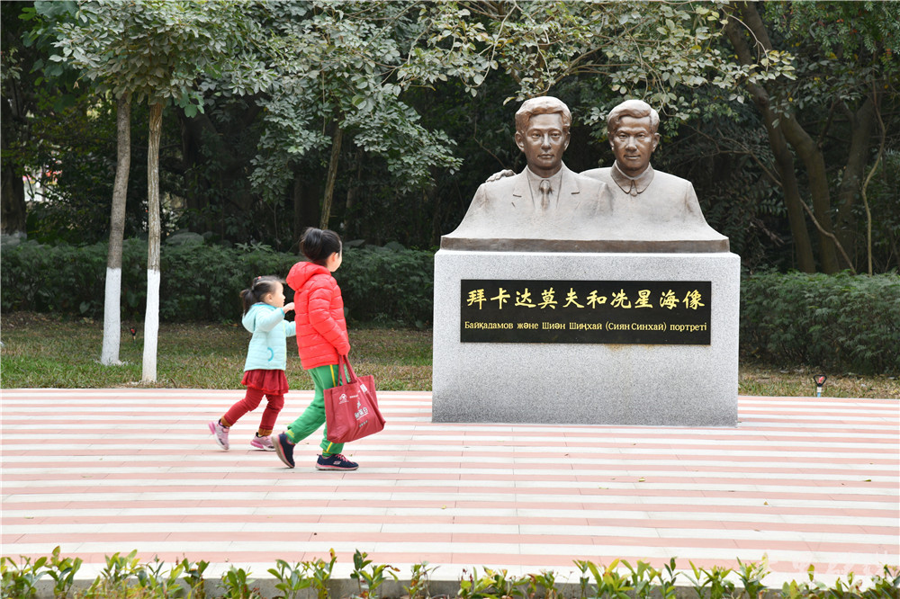 2020年,在番禺啟動的冼星海與拜卡達莫夫友誼之路更具象征意義。這條充滿音樂元素的步行道,與哈薩克斯坦阿拉木圖的“冼星海大街”和“拜卡達莫夫大街”遙相呼應,路面鑲嵌的音符,鐫刻著《阿曼蓋爾德》的旋律片段。在紀錄片《你好,哈薩克斯坦》中,中哈青少年共同彈奏這段旋律的畫面感動無數觀眾,正如導演手記所寫:“番禺的這條友誼之路,讓音樂成為跨越國界的語言。”