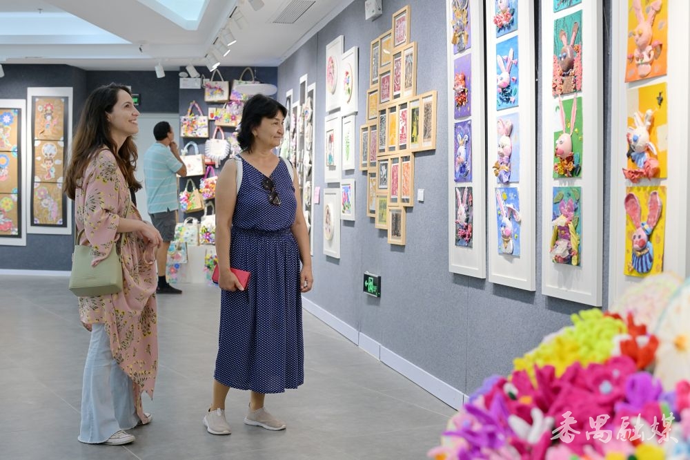 在美術(shù)部的手工藝作品展前,她駐足良久。扎染的藍(lán)白紋樣流動著東方韻味,陶藝作品帶著孩童的天真筆觸,紙藝與服裝設(shè)計藏著巧思,玻璃繪畫折射出斑斕光影。“這些作品里有孩子們的想象力,更有對生活的熱愛。”她輕聲贊嘆,不時向陪同人員詢問創(chuàng)作細(xì)節(jié),眼中的欣賞溢于言表。