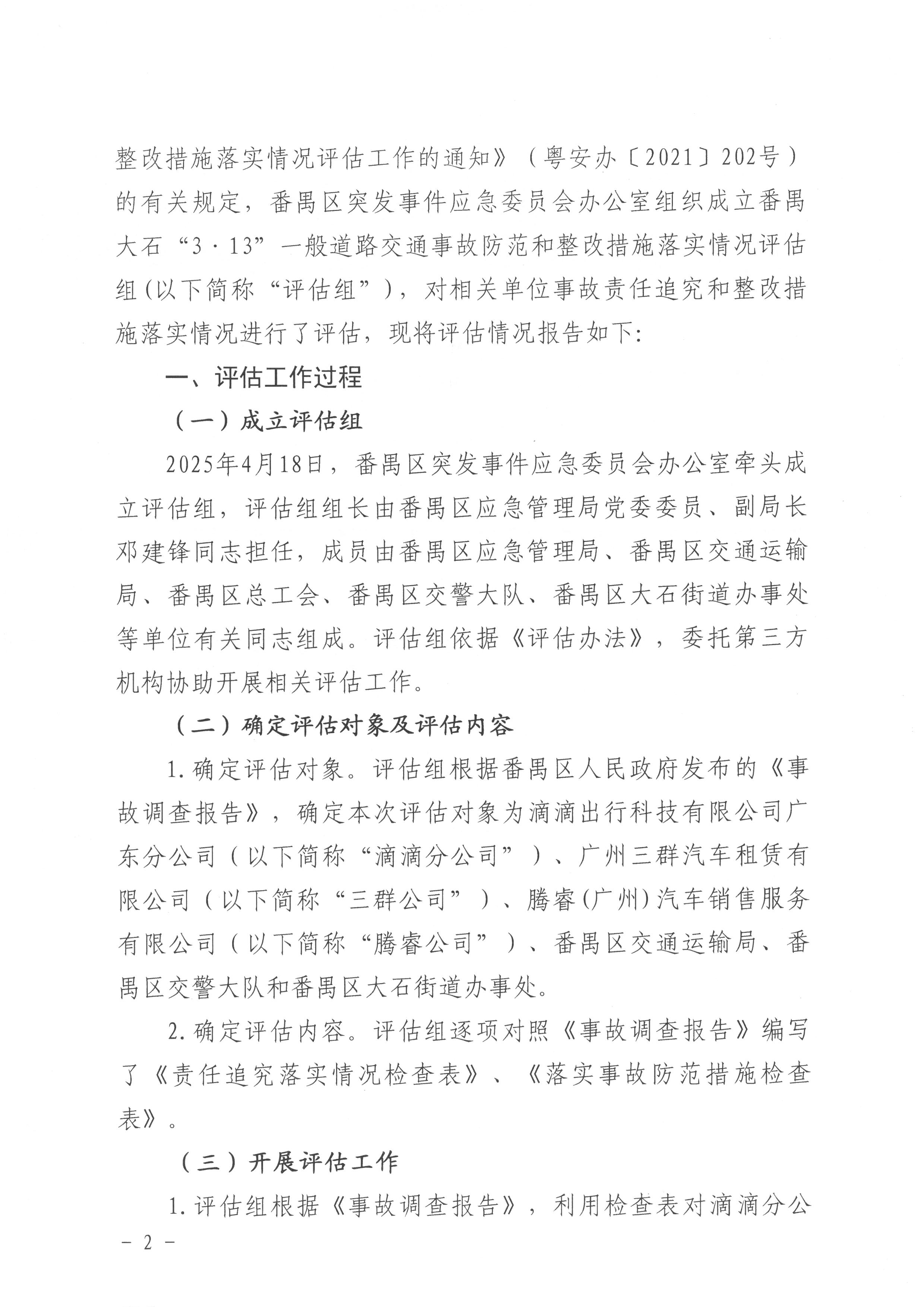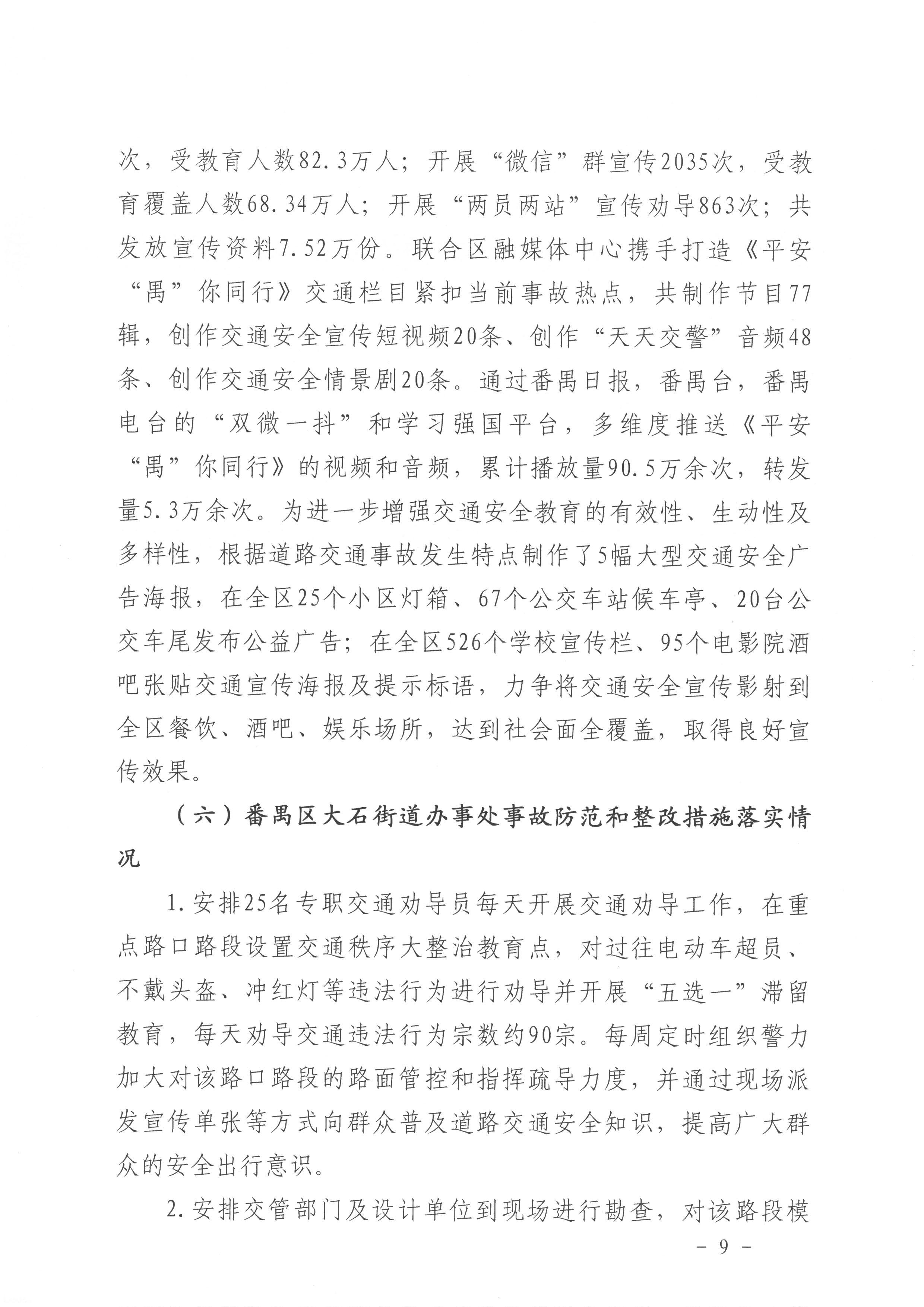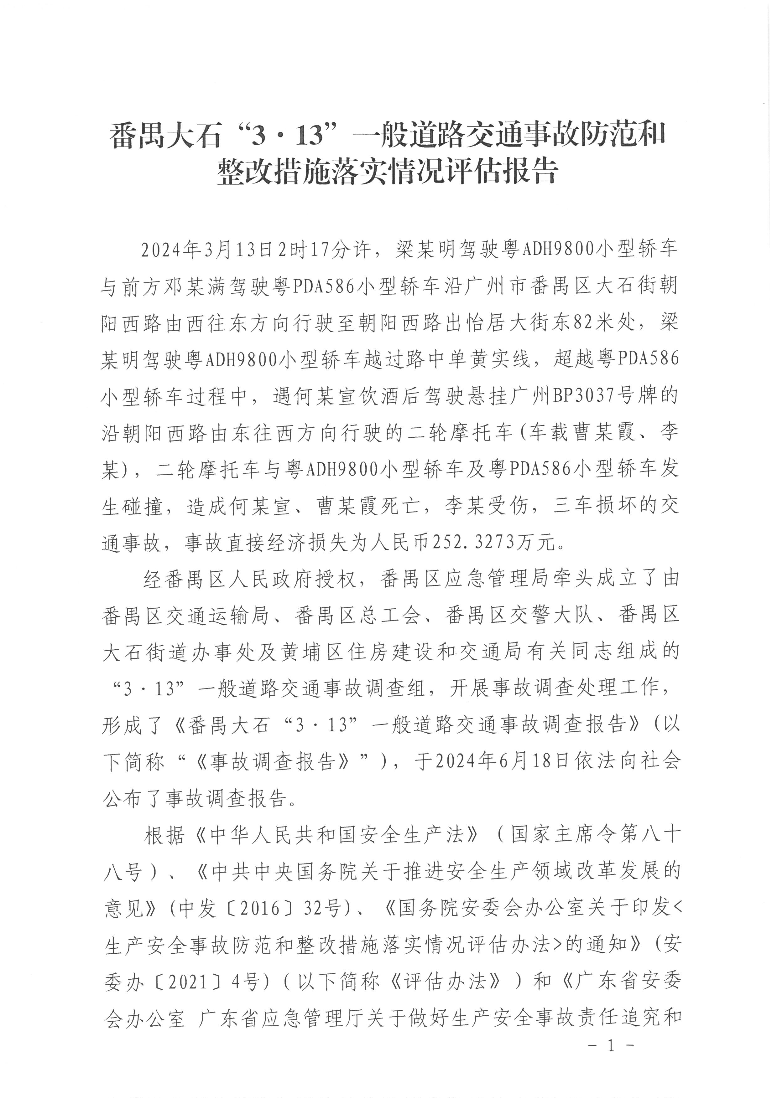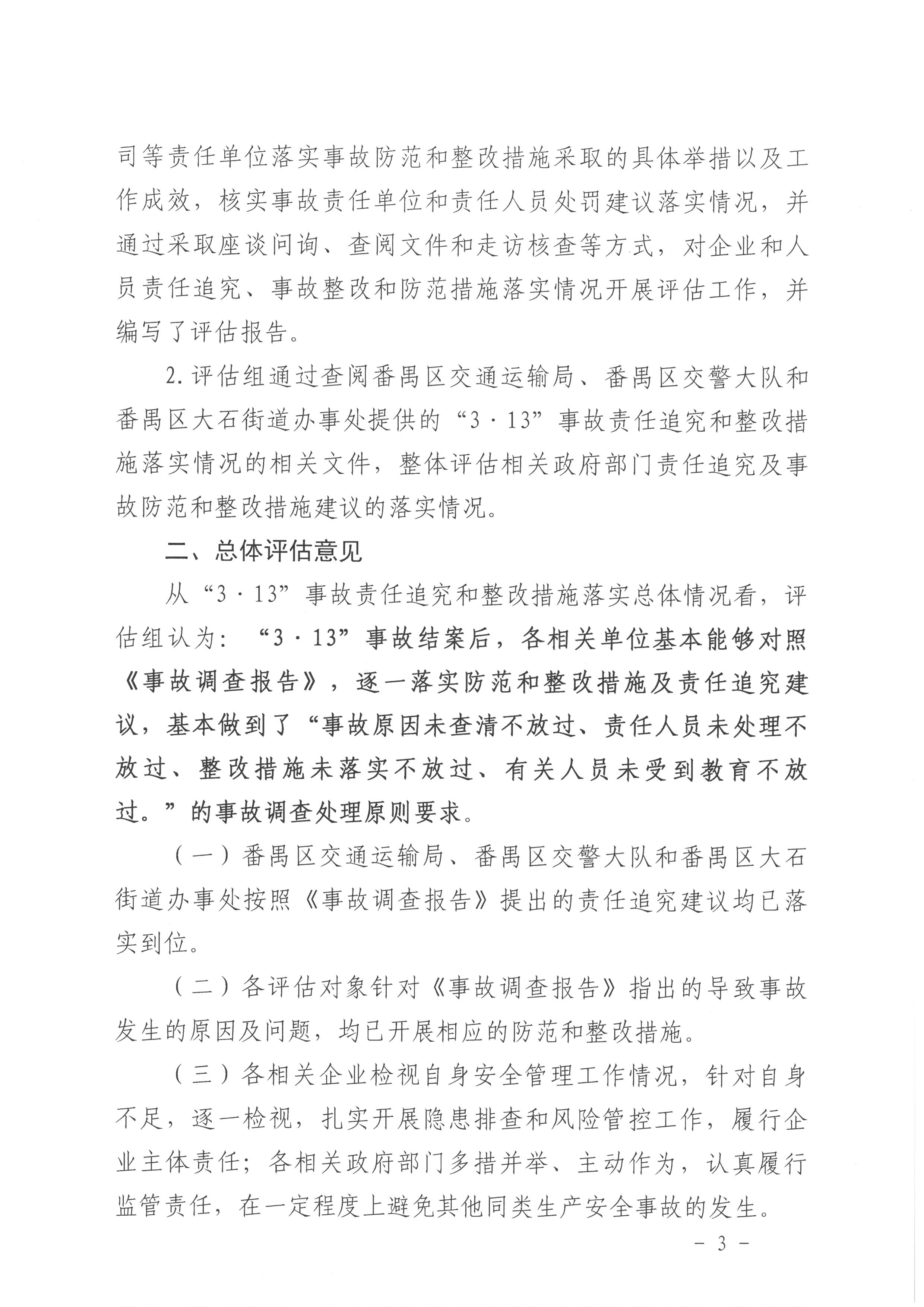 番禺大石“3·13”一般道路交通事故防范和整改措施落實情況評估報告