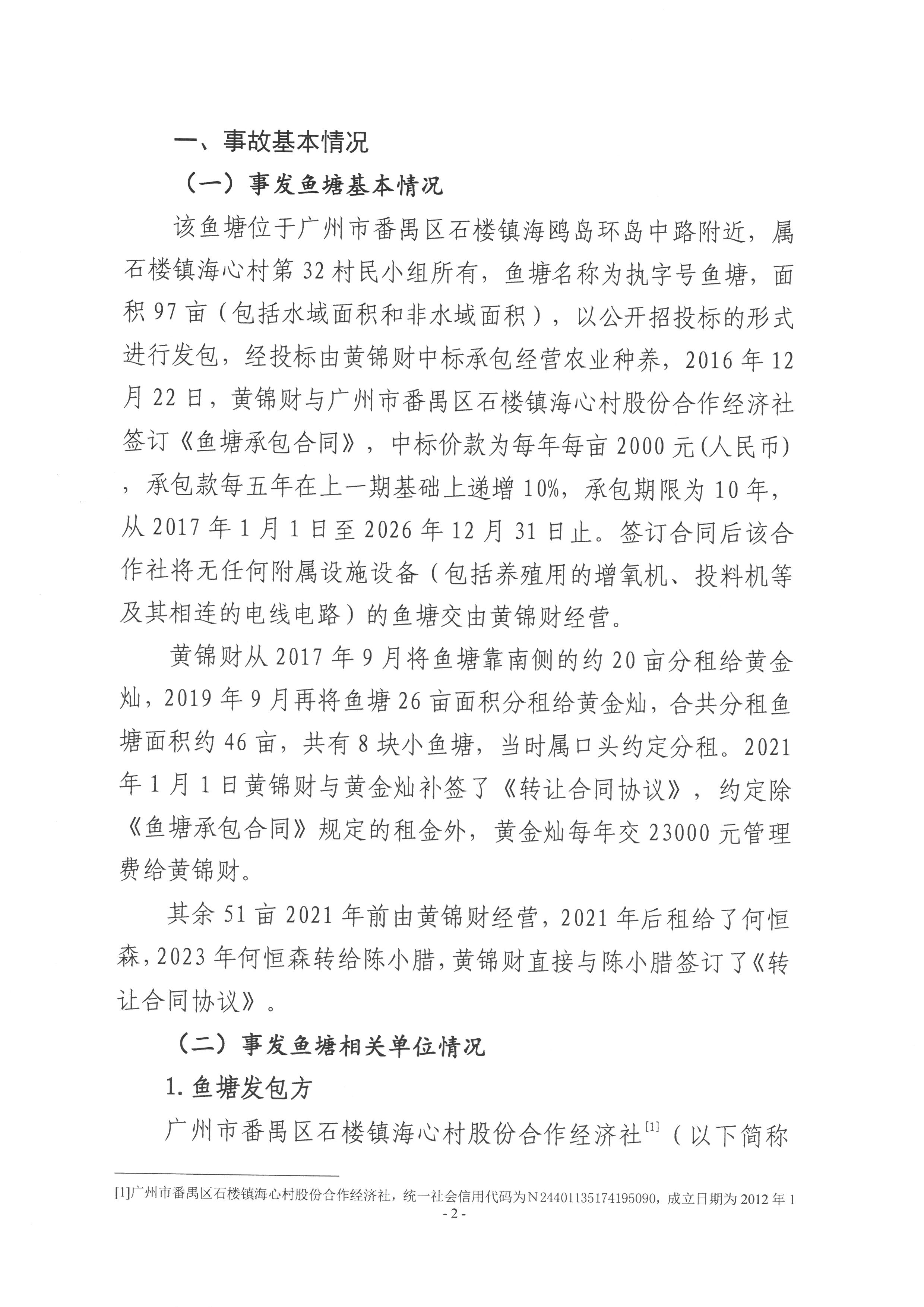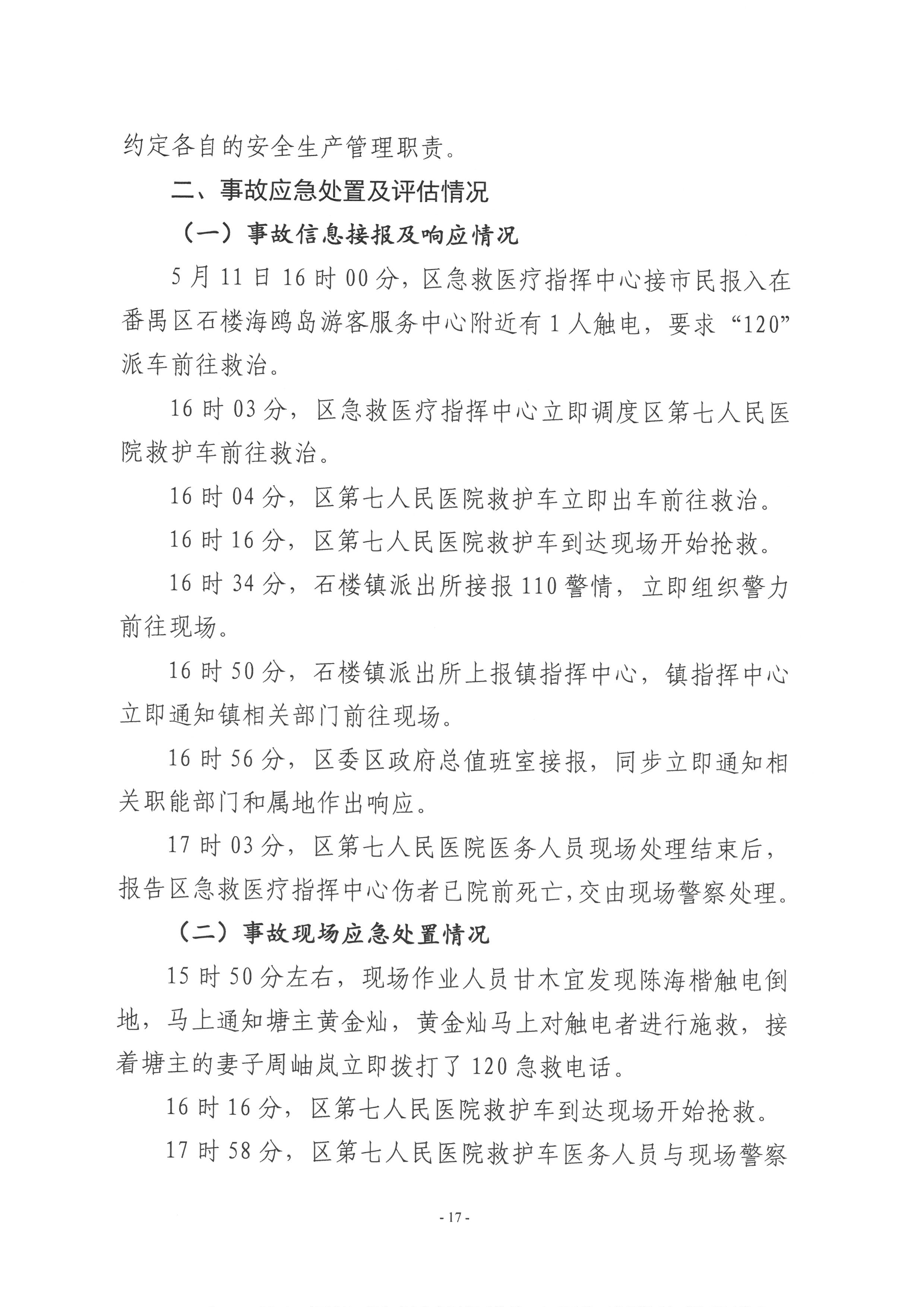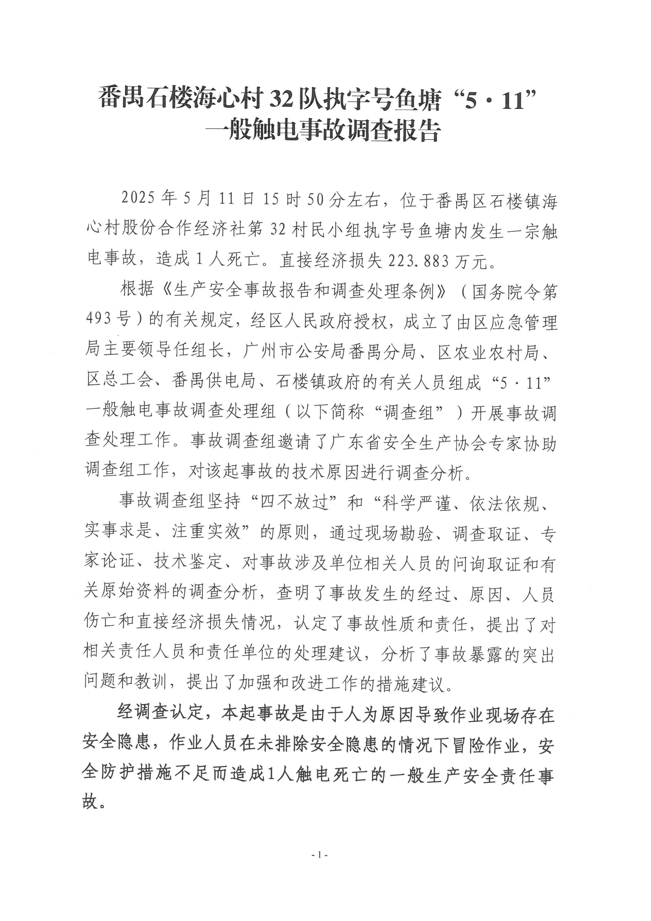 番禺石樓海心村32隊執(zhí)字號魚塘“5·11”一般觸電事故調(diào)查報告
