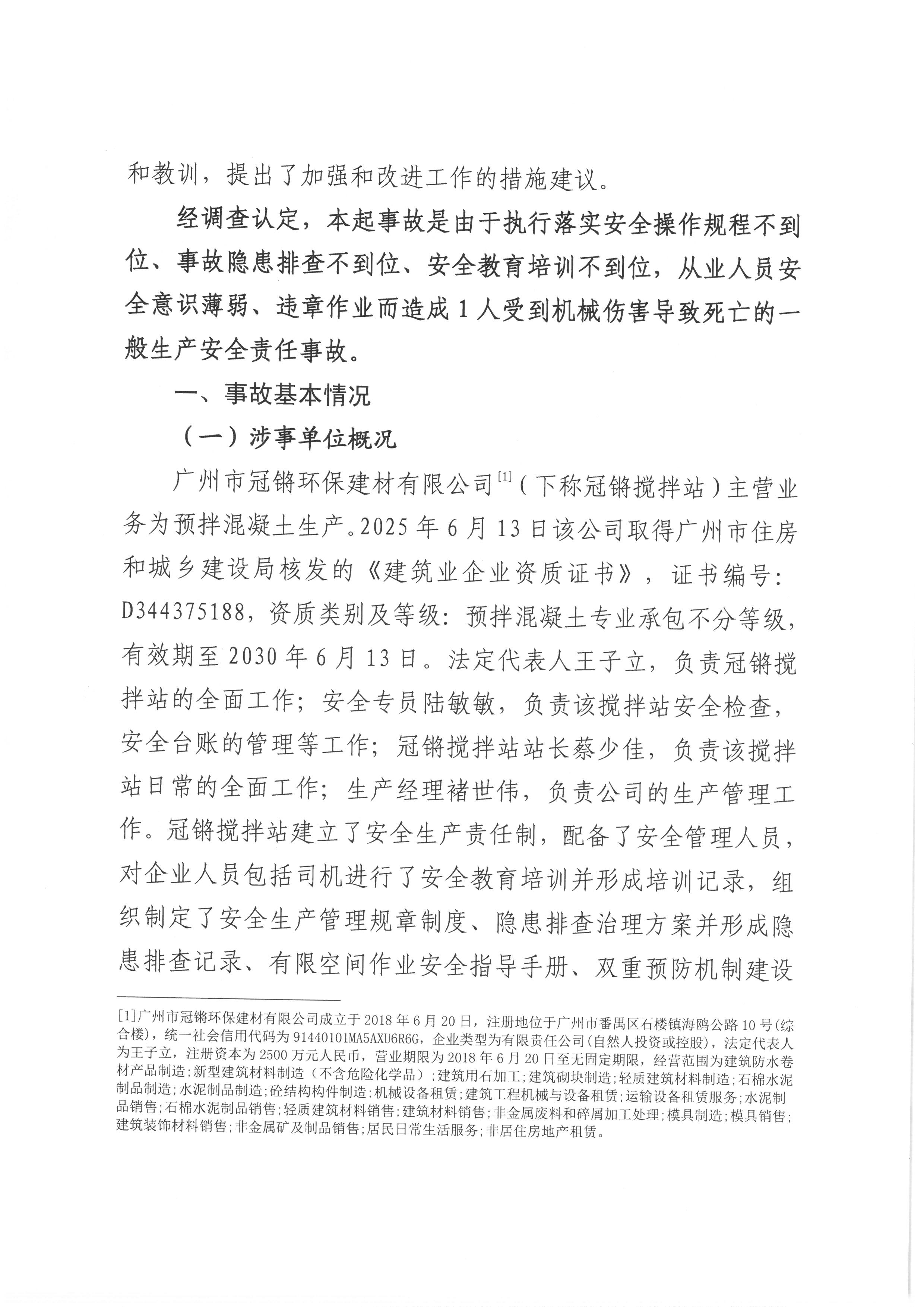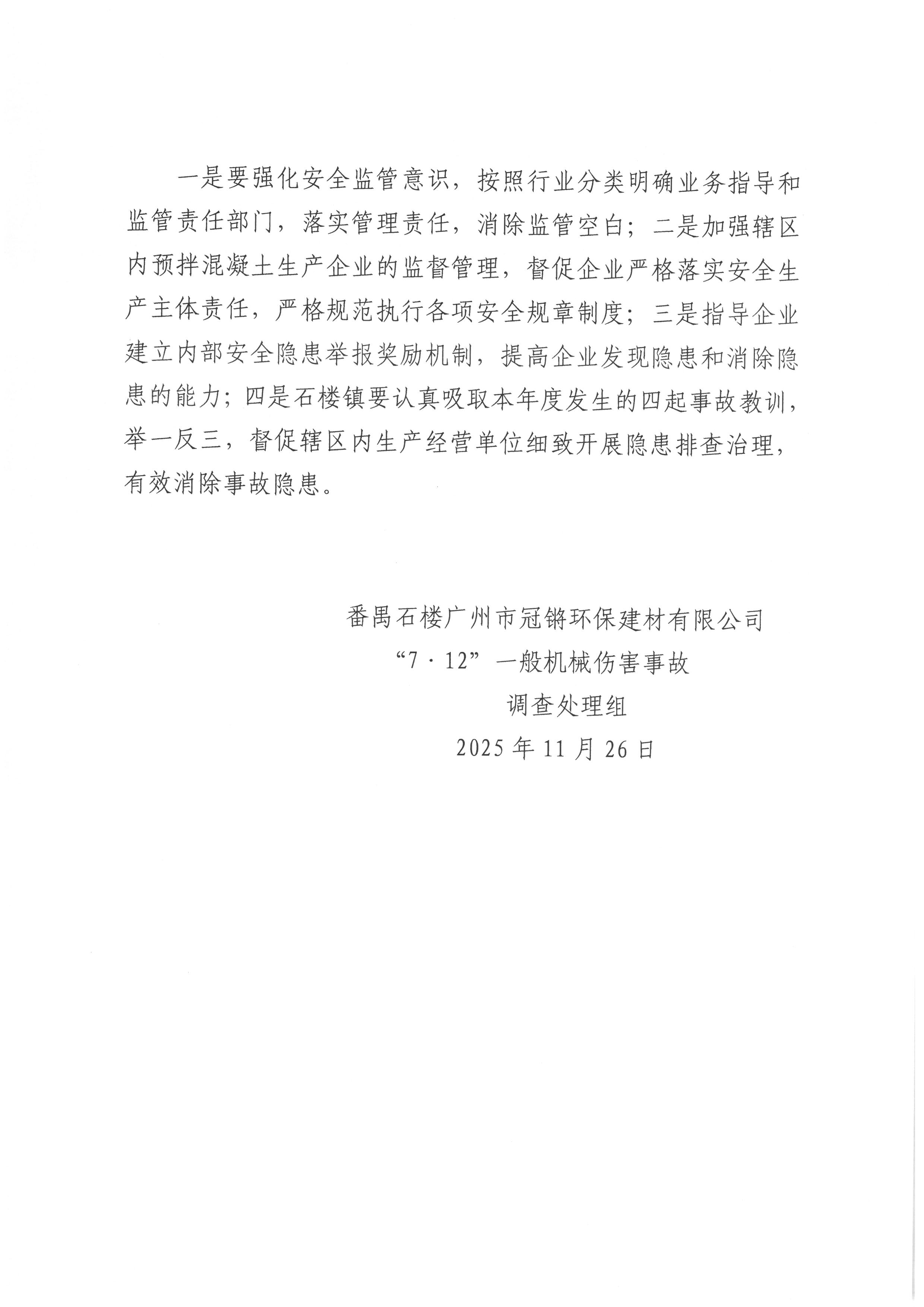 番禺石樓廣州市冠鏘環保建材有限公司“7·12”一般機械傷害事故調查報告