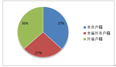 2021年,求職者有56294人,其中,本市戶籍占比37%,本省外市戶籍占比27%,外省戶籍占比36%。