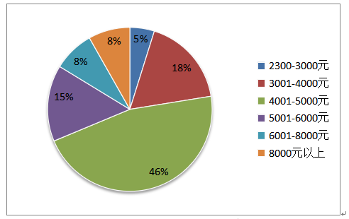 2021年,求職者期望月薪主要集中在4001-5000元,占比46%。8000元以上,占比8%。