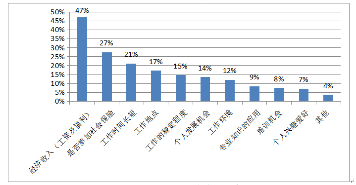 (四)求職者求職注重經(jīng)濟收入、是否參加社會保險以及工作時間長短