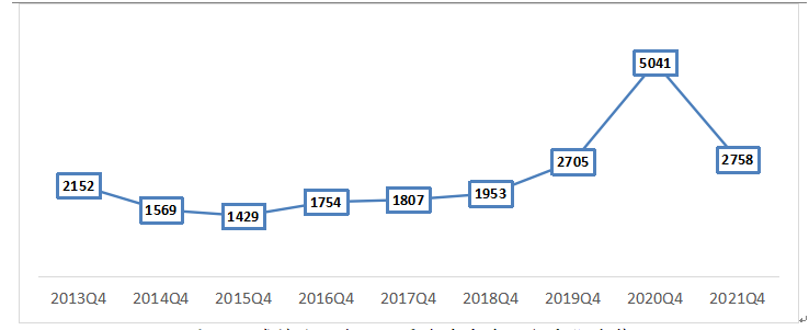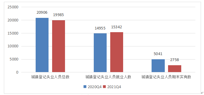 2021年第四季度末,城鎮(zhèn)登記失業(yè)人員期末實有人數(shù)2758人,同比減少45.29%。