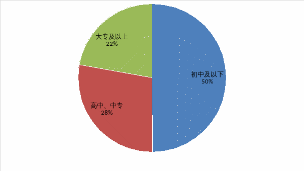2022年第一季度末,我區外來務工人員按學歷劃分,初中及以下學歷占比50%,高中、中專學歷占比28%,大專及以上學歷占比22%。跟2021年同期相比沒有變化。