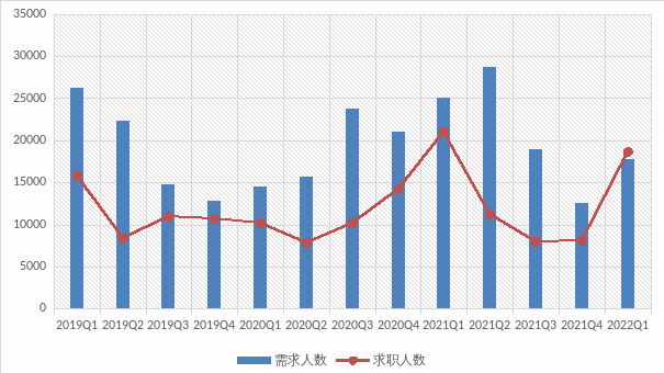 2022年第一季度,用人單位登記招聘各類人員17782人次,同比減少29.10%。求職人數為18632人次,同比減少11.58%。