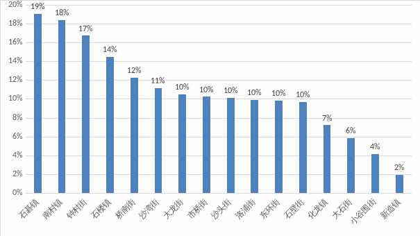 2022年第一季度末,我區外來務工人員按就業地劃分,人數排名前三的鎮(街)是大龍街、南村鎮、大石街,占我區外來務工人員總數的比例分別為13.53%、11.49%、8.75%。總體排名跟2021年同期相比沒有明顯變化。