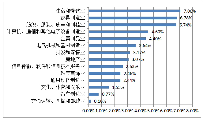 2.企業總體就業形勢穩定,但個別行業流失率偏高。流失率排名前三的是:交通運輸、倉儲和郵政業,汽車制造業,房地產業。