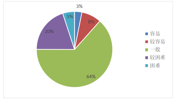 1054家企業中認為招工容易的占比3%,較容易的占比8%,一般的占比64%,較困難的占比20%,困難的占比5%。