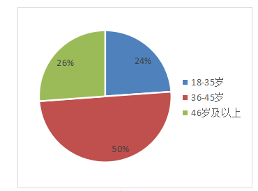 企業對新招聘管理人員的年齡要求按年齡段劃分:18-35歲,有24%企業選擇;36-45歲,有50%企業選擇;46歲及以上,有26%企業選擇。