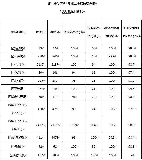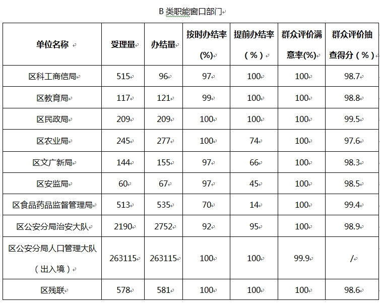 2.除區住建局、區國規局(國土)、區消防大隊沒有使用一站式審批系統由其自行報送外,其他單位受理量、辦結量、按時辦結率(%)、提前辦結率(%)采集于一站式審批系統,群眾評價滿意率(%)采集于廣州市政務服務評價系統。