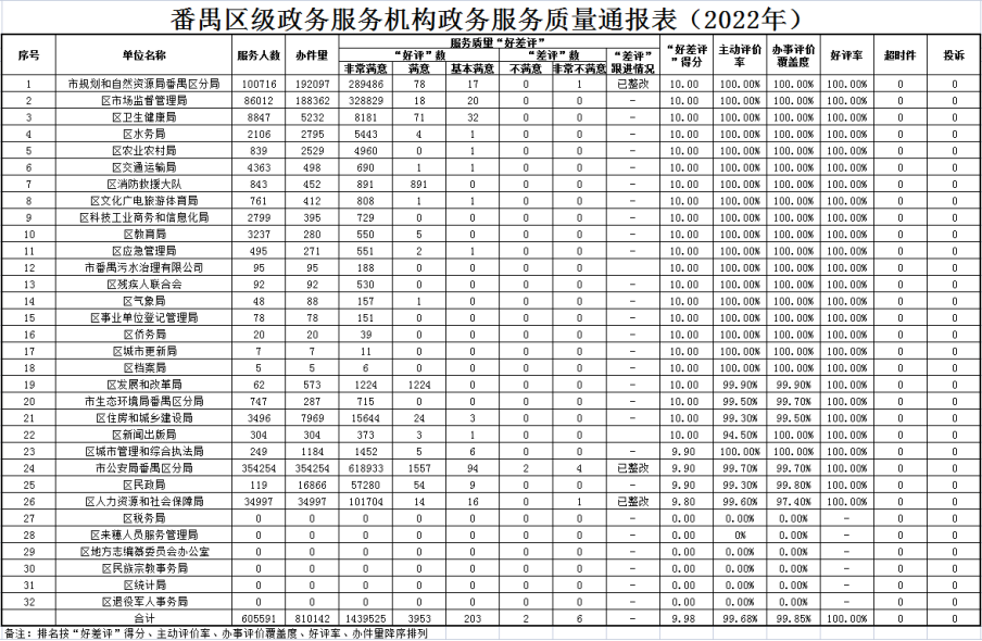 關(guān)于2022年度番禺區(qū)行政服務效能考評結(jié)果的通報