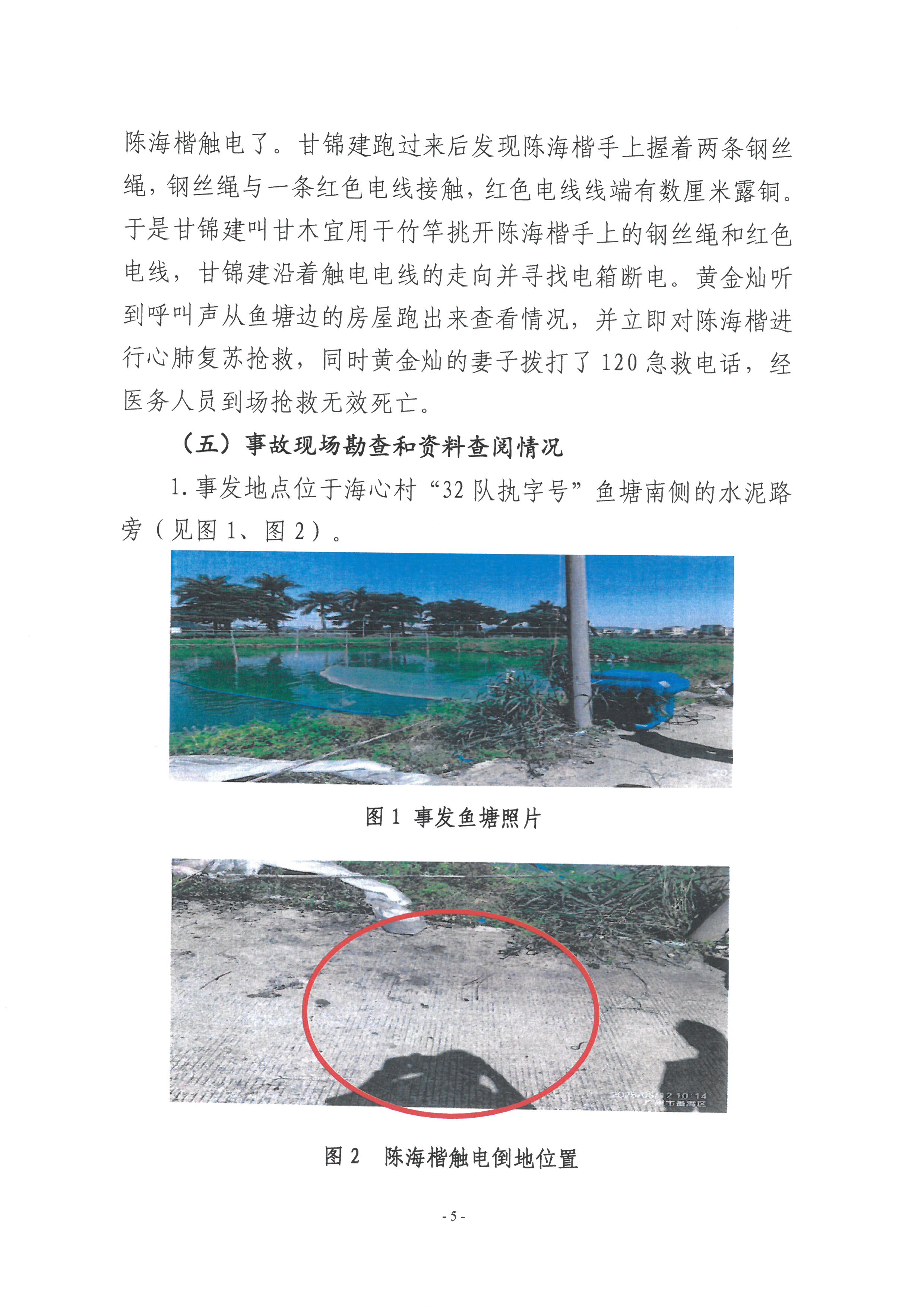 番禺石樓海心村32隊執字號魚塘“5·11”一般觸電事故調查報告