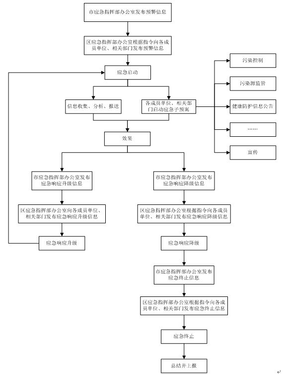 (3)負責及時向區政府報告應急處置情況,提請區政府向市應急指揮部報告空氣污染應急情況,協調周邊地區政府實施污染協同控制。