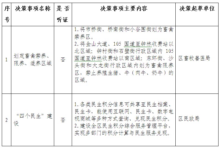 2014年廣州市番禺區人民政府重大行政決策事項和重大行政決策聽證事項目錄