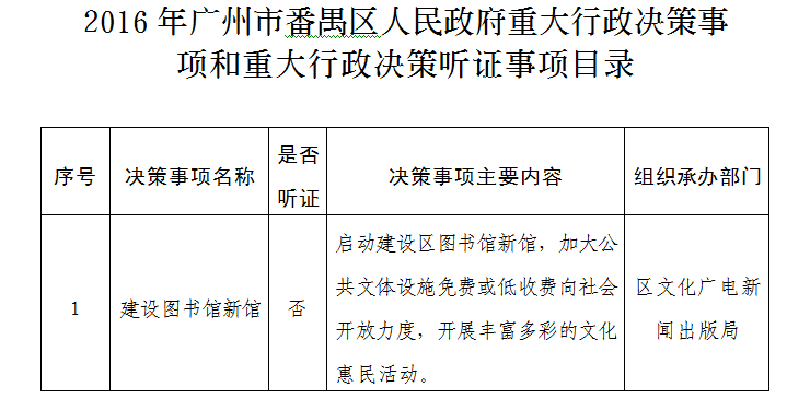 《2016年廣州市番禺區(qū)人民政府重大行政決策事項(xiàng)和重大行政決策聽證事項(xiàng)目錄》業(yè)經(jīng)區(qū)政府同意,現(xiàn)印發(fā)給你們,請(qǐng)按照《廣州市重大行政決策程序規(guī)定》及《廣州市番禺區(qū)實(shí)施〈廣州市重大行政決策程序規(guī)定〉辦法的通知》的有關(guān)規(guī)定認(rèn)真組織實(shí)施。