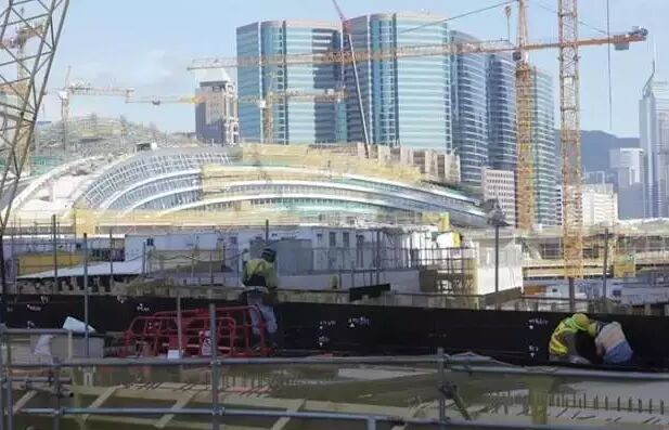 圖為高鐵西九總站地盤,工程進行得如火如荼。