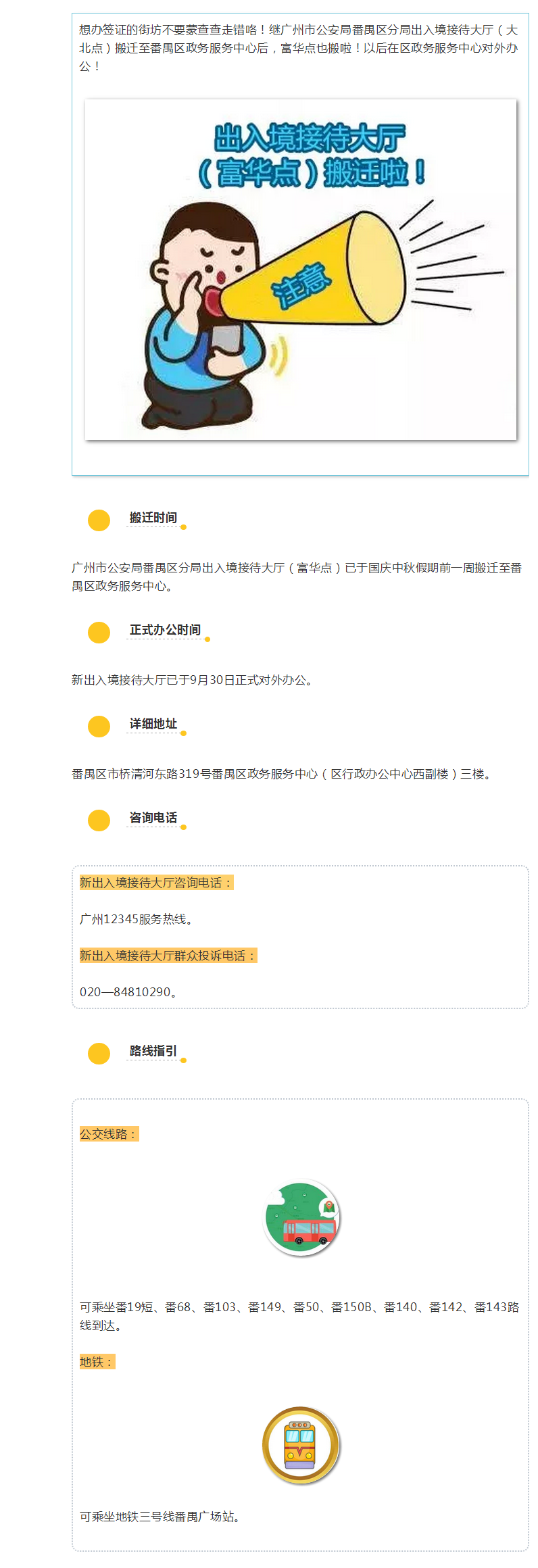 別再蒙查查啦!番禺出入境接待大廳(富華點)搬新地址了!