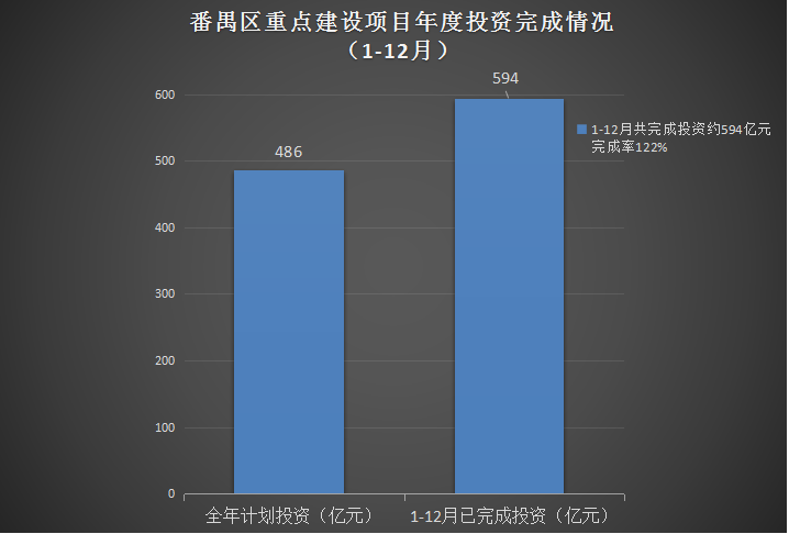 我區共有189個項目納入廣州市“攻城拔寨”項目計劃,年度計劃投資約284億元,1-12月共完成年度投資計劃的126%。