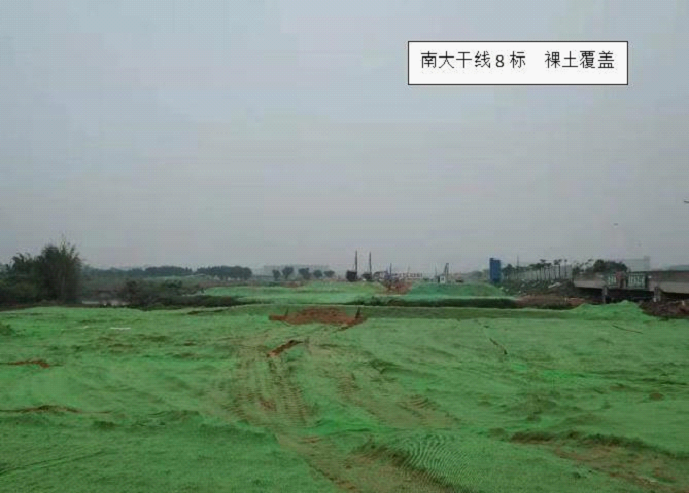 (1)南大干線3標(南大干線(番禺大道節點立交)工程施工總承包)工程目前仍處于管線遷移及右轉匝道基礎施工,對非施工作業面裸露土采取覆蓋措施。