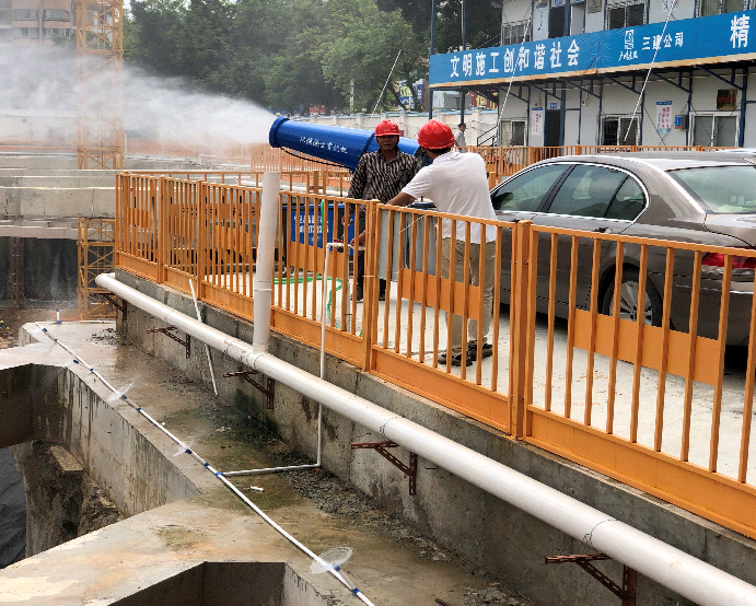 施工現場安裝揚塵控制噴淋設施及基本落實施工場地非工作面裸露土覆蓋,控制施工噪音。