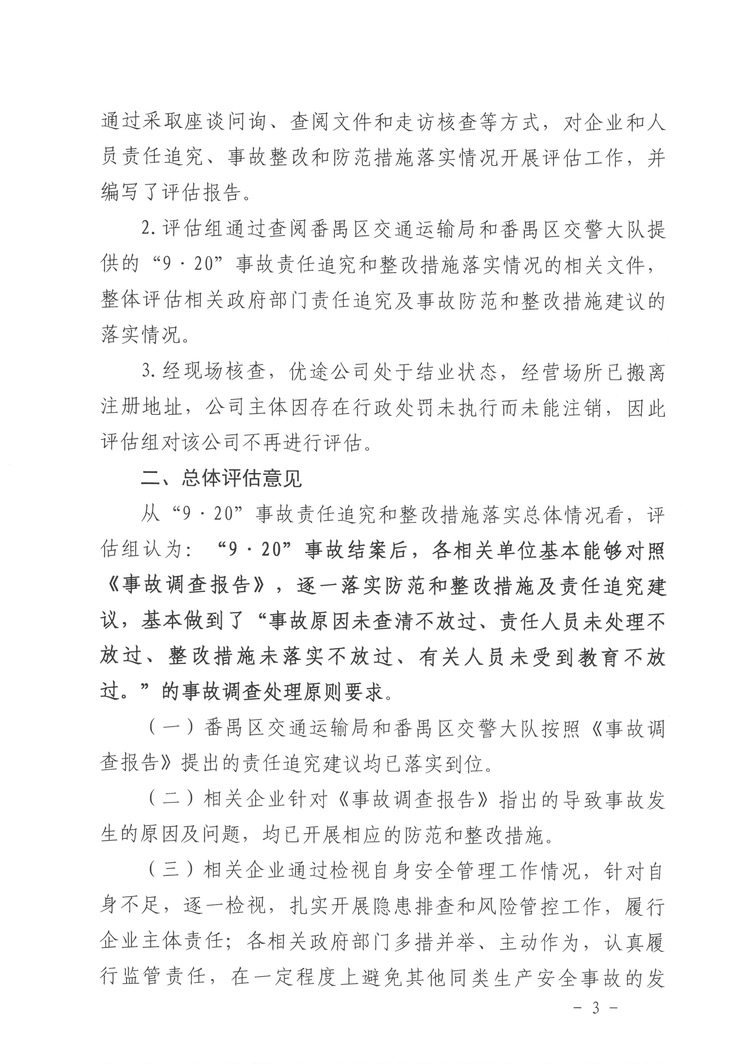 番禺洛浦“9·20”一般道路交通事故防范和整改措施落實(shí)情況評估報(bào)告