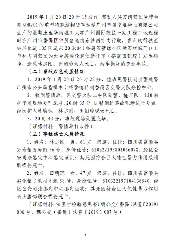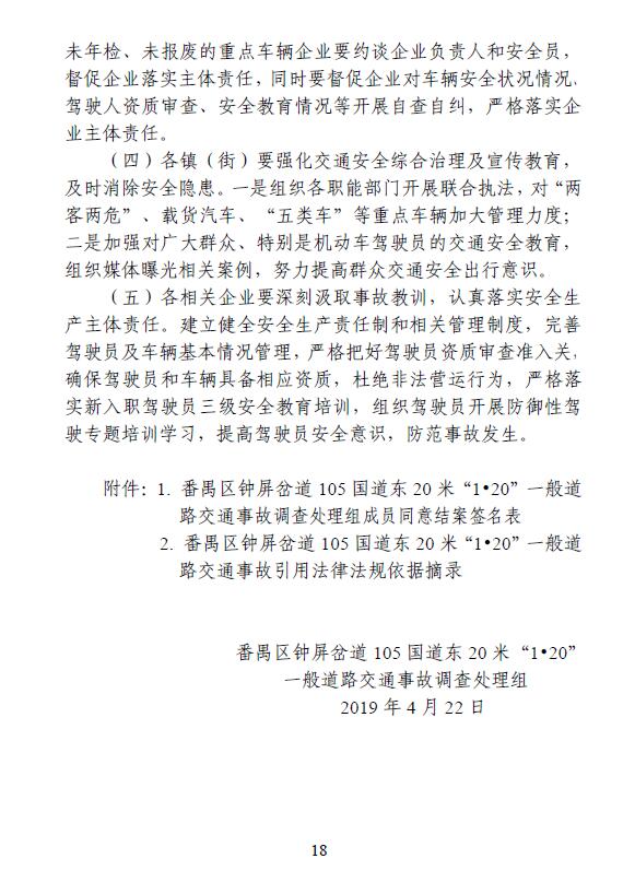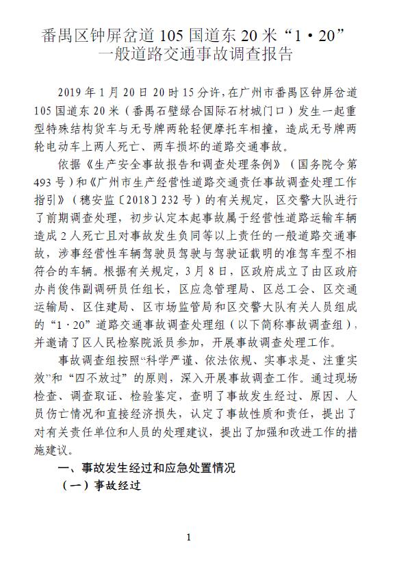 番禺區鐘屏岔道105國道東20米“1·20”一般道路交通事故調查報告