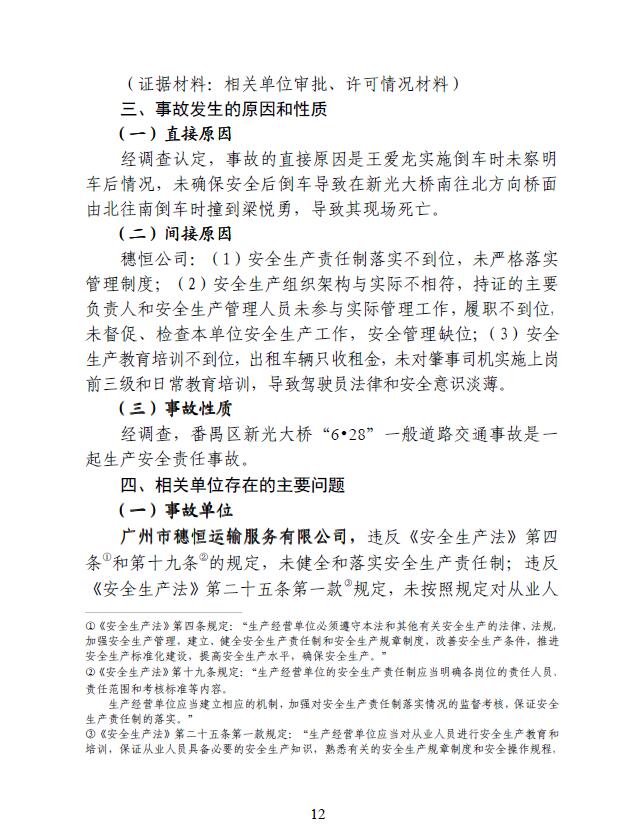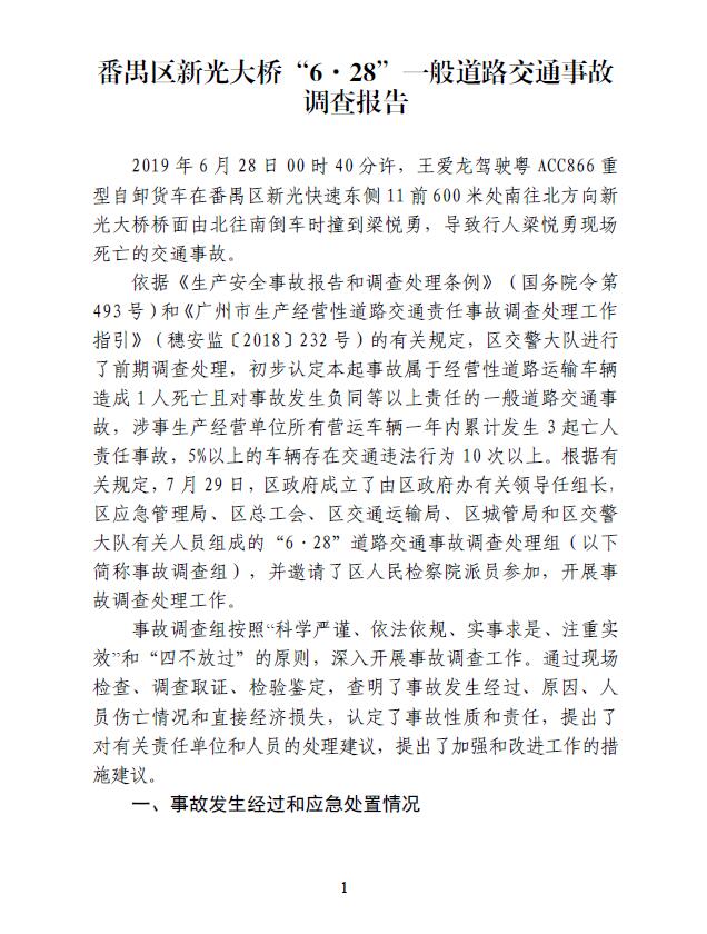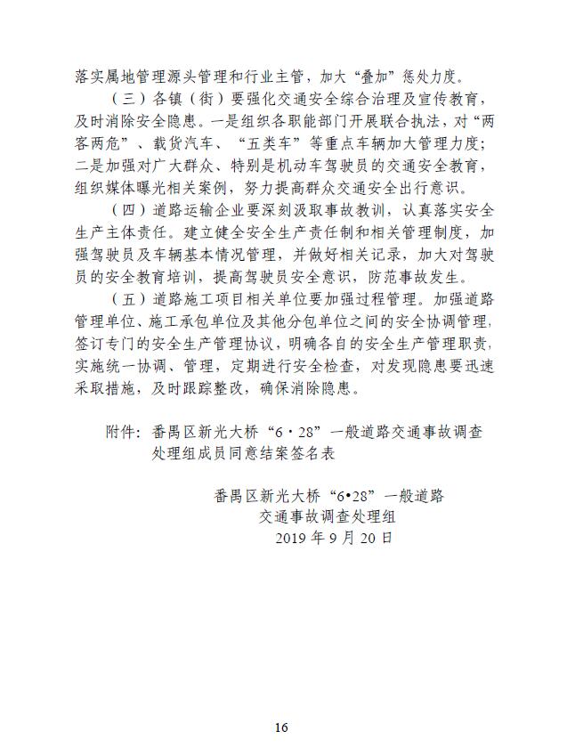 番禺區(qū)新光大橋“6·28”一般道路交通事故調查報告