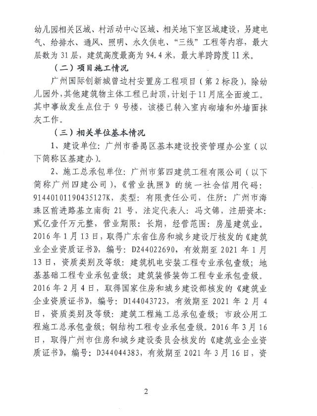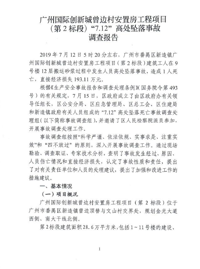 廣州國際創新城曾邊村安置房工程項目(第2標段)“7.12”高處墜落事故調查報告