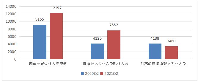 2021年第二季度,城鎮登記失業人員就業人數為7662人,同比增長85.75%。