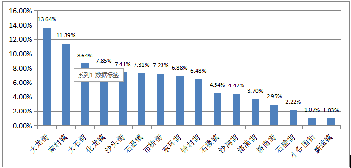 2021年第二季度,我區外來務工人員按就業地劃分,總體分布趨勢呈階梯狀,與第一季度相比沒有明顯變化。第一階梯的是大龍街、南村鎮,分別占比13.64%、11.39%;第二階梯的是大石街、化龍鎮、沙頭街、石碁鎮、市橋街、東環街、鐘村街,人數占比則相差不大。