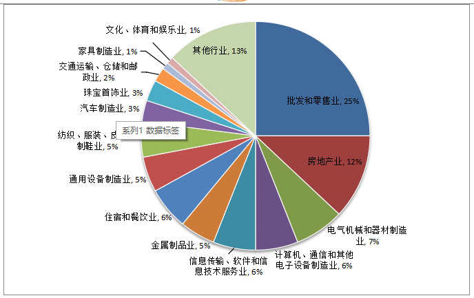 2021年第二季度,我區1043家“四上”企業主要分14個行業分析,分別是:批發和零售業,房地產業,電氣機械和器材制造業,計算機、通信和其他電子設備制造業,信息傳輸、軟件和信息技術服務業,金屬制品業,住宿和餐飲業,通用設備制造業,紡織、服裝、皮革和制鞋業,汽車制造業,珠寶首飾業,交通運輸、倉儲和郵政業,家具制造業,文化、體育和娛樂業。其中,企業數量最多的是批發和零售業,占比25%;企業數量最少的是“家具制造業”和“文化、體育和娛樂業”,占比都只有1%。