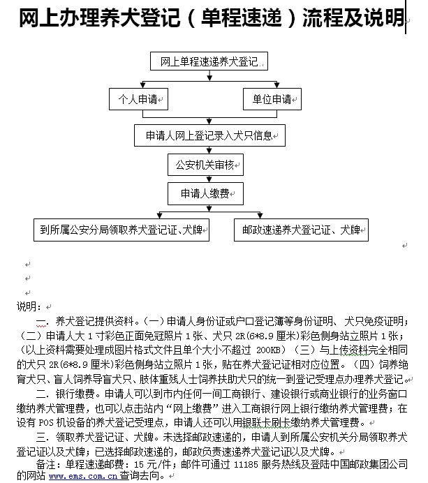 養犬人居所房產證或房屋租賃合同 原件復印件各一份 |