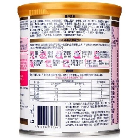 一看產(chǎn)品名稱。產(chǎn)品標(biāo)簽上標(biāo)示的產(chǎn)品名稱應(yīng)為產(chǎn)品注冊(cè)批準(zhǔn)的名稱,如×××特殊醫(yī)學(xué)用途全營(yíng)養(yǎng)配方食品(粉)、×××特殊醫(yī)學(xué)用途嬰兒無(wú)乳糖配方食品(粉)、×××特殊醫(yī)學(xué)用途嬰兒氨基酸配方食品(粉)等。